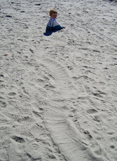 And a random pic...here is a photo from Friday of Stella 'bum-shuffling' along the sand leaving a trail like a snail behind her! Our GP has told us she is most probably Hypotonic (low muscle tone) as she still cannot weight bear/ stand up even though she's one now. We have had her hips checked and they are fine thank goodness. We are going to a paediatrician next who will hopefully confirm that she is just Hypotonic and that she will get up and stand one day and not to worry about it!!!
