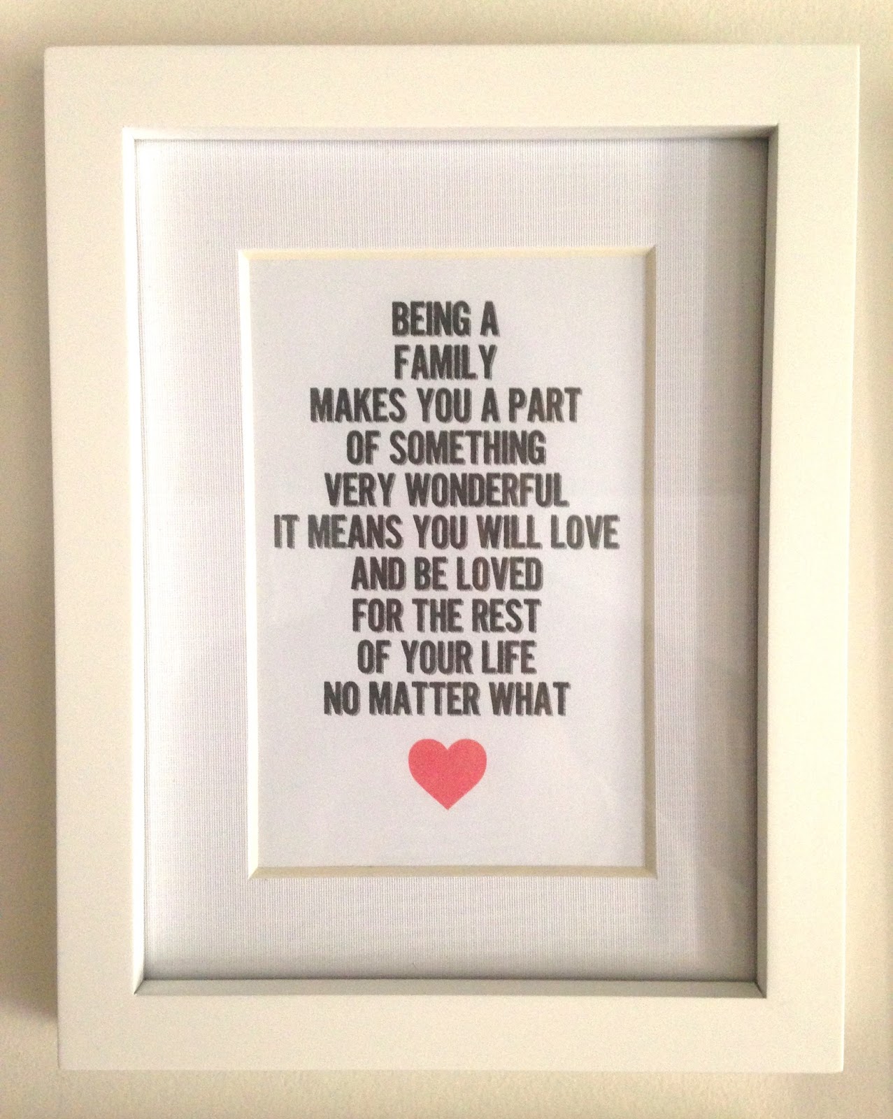 and I had a brainwave to google 'family quotes' so I typed one up using Pages on my mac laptop, and printed it out on my new Brother printer- love it!